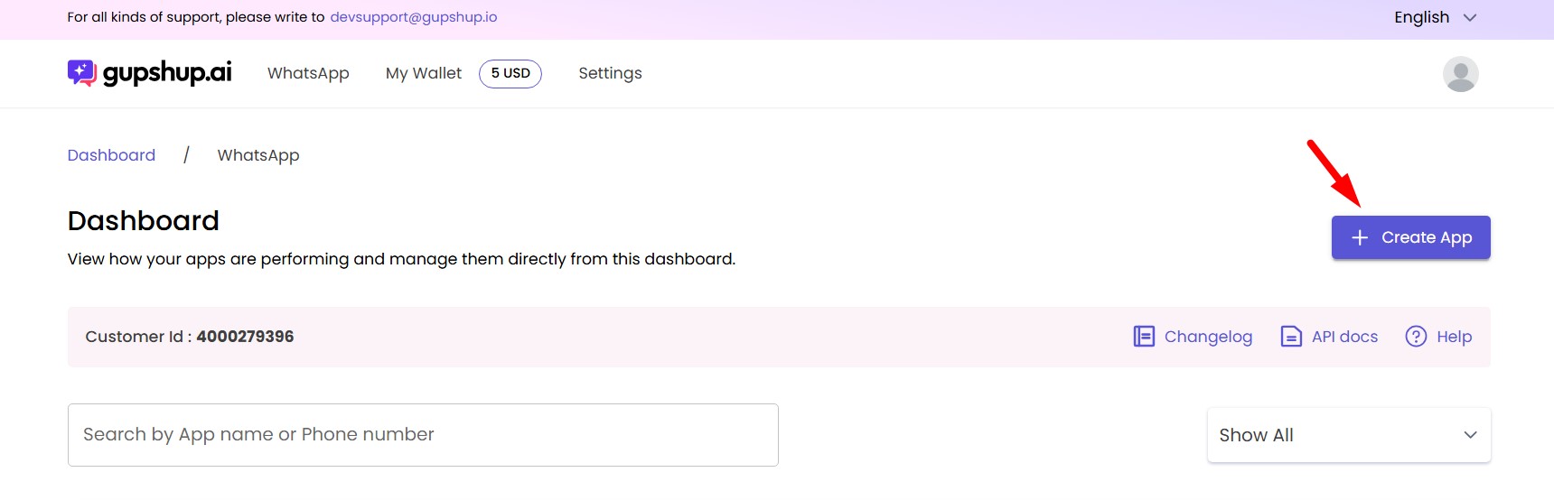 2. Creating an Application in Gupshup