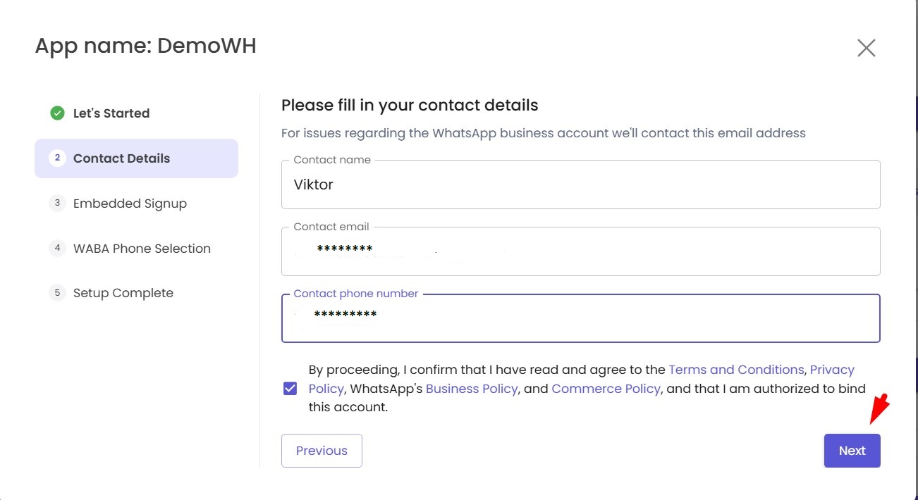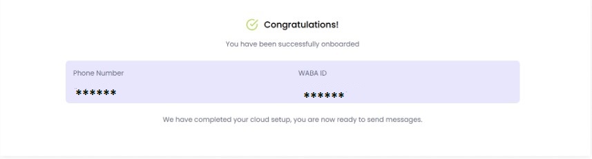 Wait for the notification about successful WABA connection — do not close the page until then
