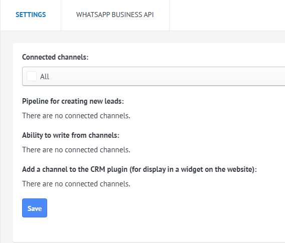 Ao conectar o widget no Kommo com êxito, as configurações dos canais estarão disponíveis na seção Configurações.