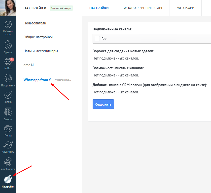 При успешном подключении виджета в amoCRM вам будут доступны настройки каналов в разделе Настройки.