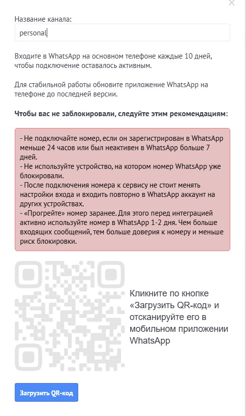- ШАГ 2. Подключение и настройка каналов WhatsApp personal