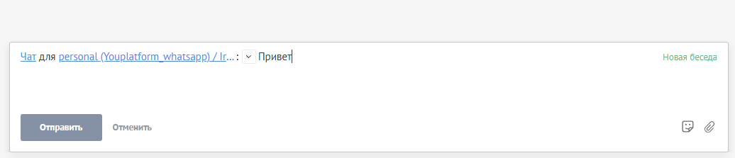 Для того, чтобы написать первым, вам необходимо выбрать номер телефона, на который необходимо отправить сообщение и канал, с которого будет отправлено сообщение.